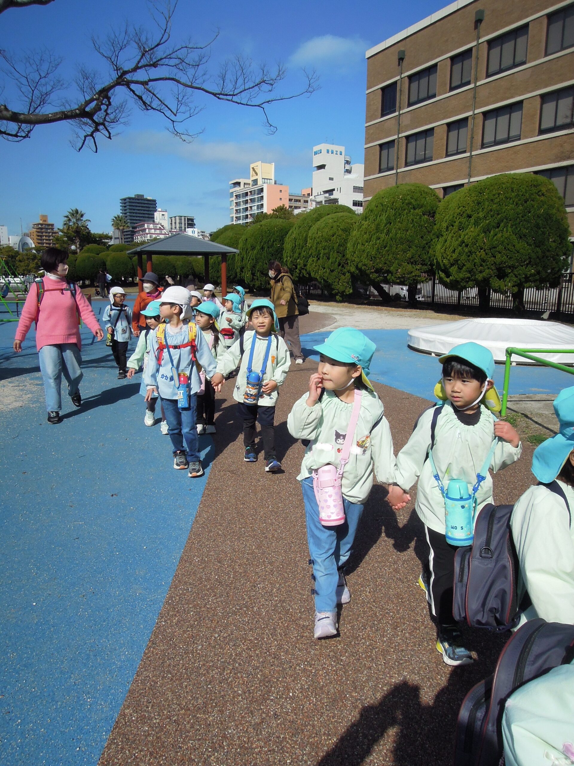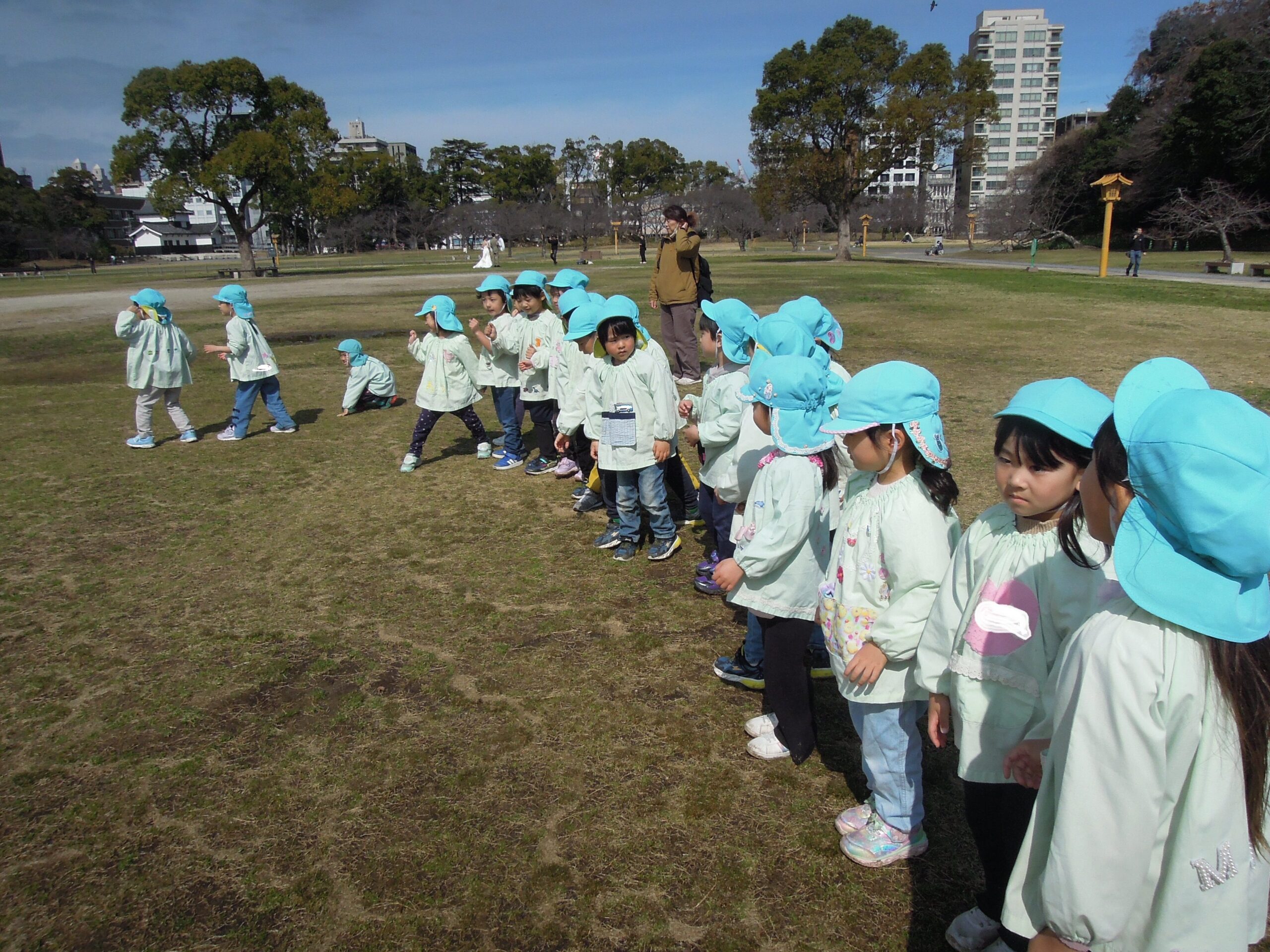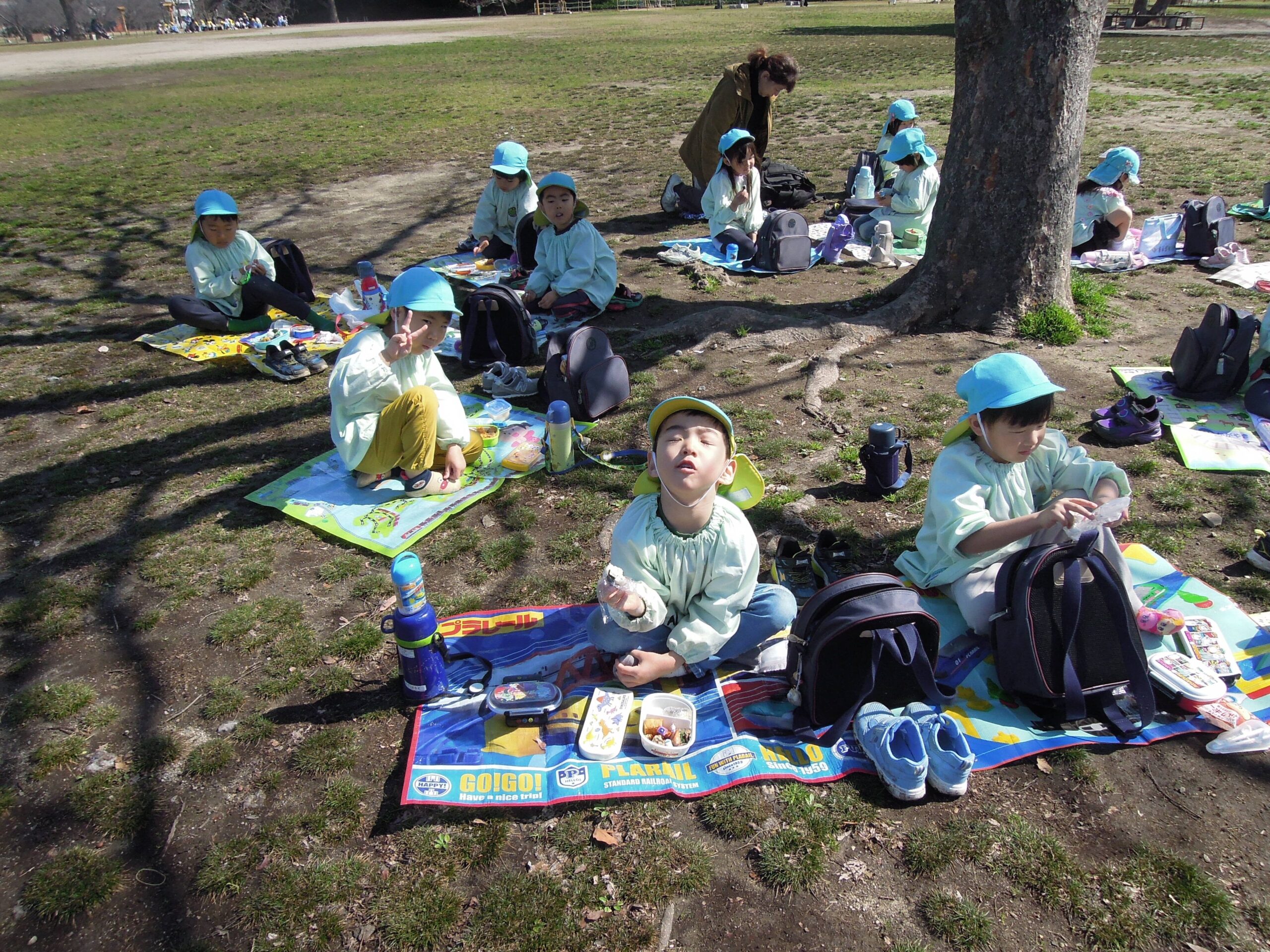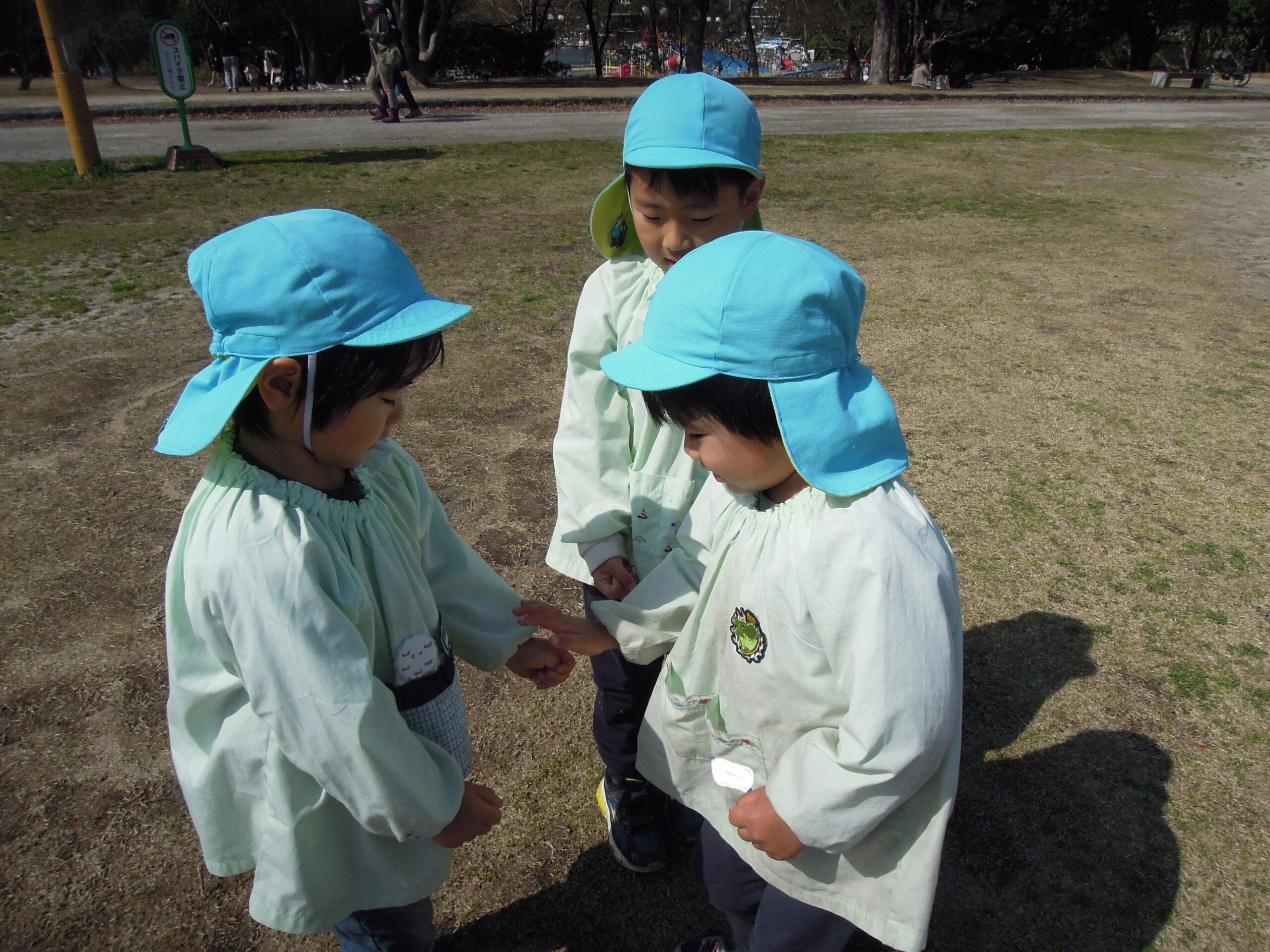 桜の木の芽を見たり、水仙の花をみたり、葉っぱが風にゆれる音を聞いたり自然もたくさん感じて過ごすことができました。 みんなで「かけっこ」や「だるまさんが転んだ」もしました。楽しい思い出がまた1つ出来ました!